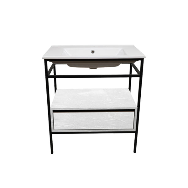 ΕΠΙΠΛΟ ΜΠΑΝΙΟΥ ZENOS 7775 ΠΛΑΤΟΥΣ 85cm ΣΕ ΟΨΗ ΛΕΥΚΟΥ ΜΑΡΜΑΡΟΥ ΜΕ ΓΚΡΙ ΝΕΡΑ