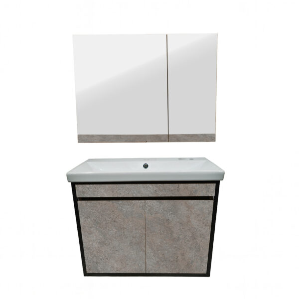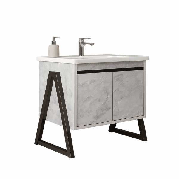 ΕΠΙΠΛΟ ΜΠΑΝΙΟΥ 7775-PRESTIGIA 80 cm ΜΕ ΒΑΣΕΙΣ ΣΤΟ ΠΛΑΙ ΣΕ ΟΨΗ ΛΕΥΚΟΥ ΜΑΡΜΑΡΟΥ ΜΕ ΓΚΡΙ ΝΕΡΑ