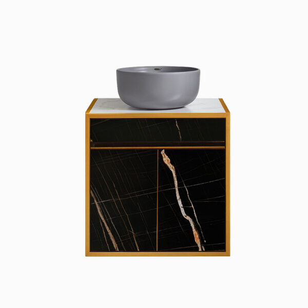 Κρεμαστό Ντουλάπι Μπάνιου Mirava100 με Καθρέφτη & Επένδυση Μελαμίνης Με Όψη Μαύρου Μάρμαρου