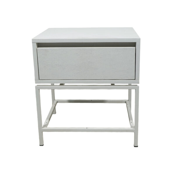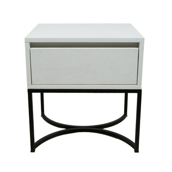 Κομοδίνο Komo-Woodtex Mε Επιφάνεια Σε Όψη Λευκού Μάρμαρου Και Μαύρη Μεταλλική Βάση
