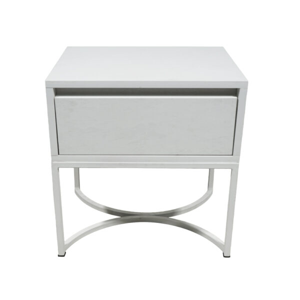 Κομοδίνο Komo-Arco Mε Επιφάνεια Σε Όψη Λευκου Μαρμαρου Και Λευκή Μεταλλική Βάση
