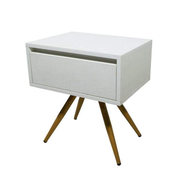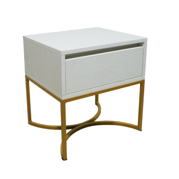 Κομοδίνο Komo-Woodtex Mε Επιφάνεια Σε Όψη Λευκού Μάρμαρου Και Χρυσή Μεταλλική Βάση
