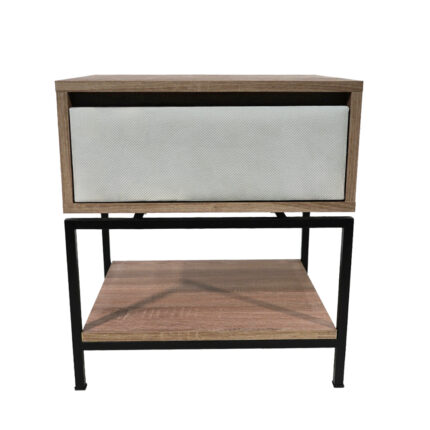 Κομοδίνο Komo-Woodtex με Υφασμάτινο Συρτάρι & Μαύρη Μεταλλική Βάση