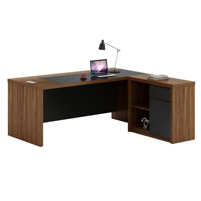 Γραφείο γωνιακό επαγγελματικό αναστρέψιμο Oscar καρυδί-ανθρακί 200×188,6×76εκ
