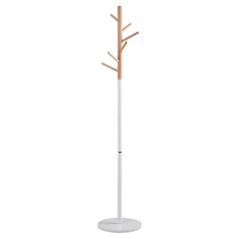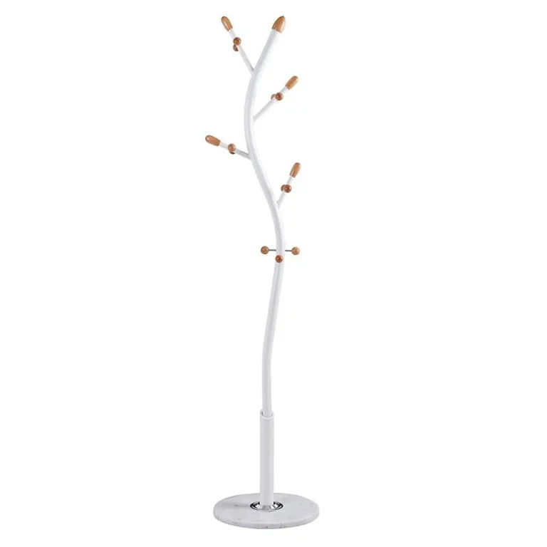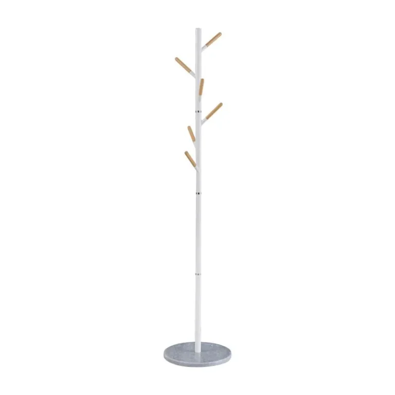 Καλόγερος ρούχων Bamile λευκό μέταλλο και rubberwood σε φυσική απόχρωση