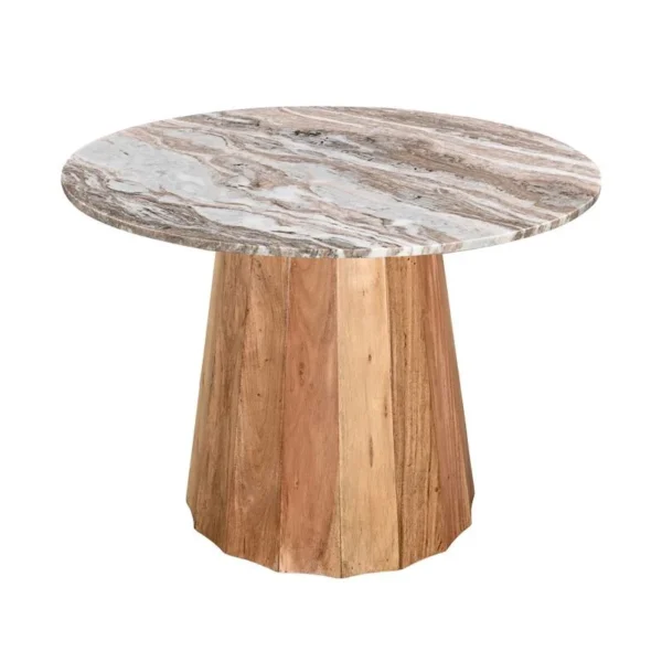 Τραπέζι Ezerdian μασίφ ξύλο ακακίας σε φυσική απόχρωση με επιφάνεια μαρμάρου Φ120×76εκ