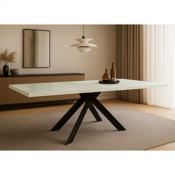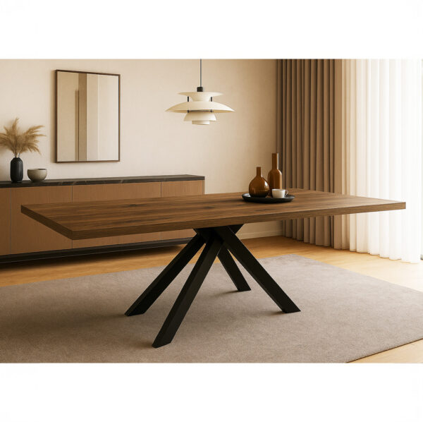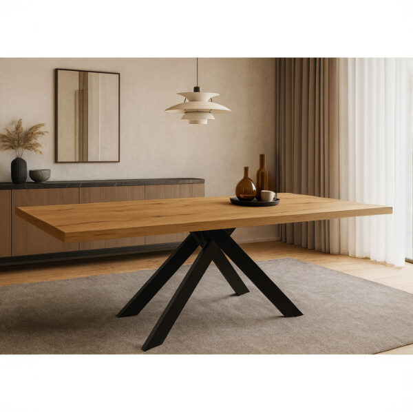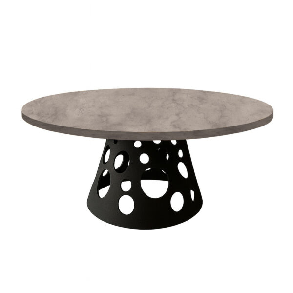 Τραπέζι Royalty I μασίφ ξύλο mango 4εκ σε φυσική απόχρωση-πόδι μεταλλικό μαύρο Φ130×77εκ