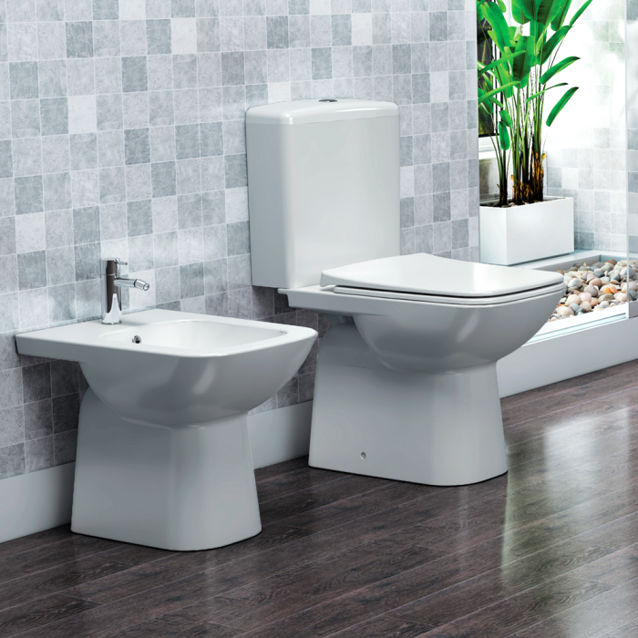 Λεκάνη Δαπέδου Πορσελάνης Cerastyle Lila με Μπιντέ 028300-p Πισωστόμια Λευκή Σετ