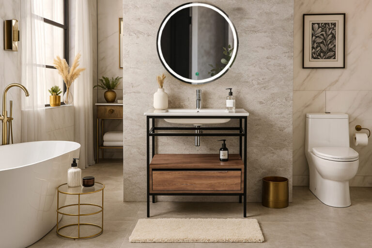 ΕΠΙΠΛΟ ΜΠΑΝΙΟΥ ZENOS 7763 ΠΛΑΤΟΥΣ 85 cm ΣΕ ΑΠΟΧΡΩΣΗ ΣΚΟΥΡΟ ΚΑΦΕ
