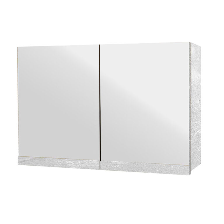 Κρεμαστό Ντουλάπι Μπάνιου Vista90 με Διπλό Καθρέφτη & Επένδυση Μελαμίνης Με Όψη Τσιμέντου Σε Ανοιχτό Χρώμα