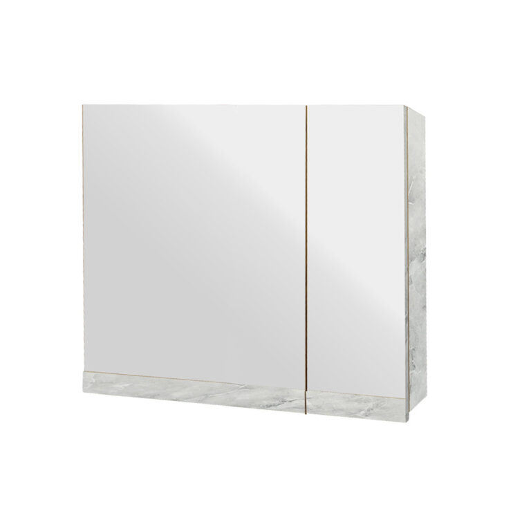 Κρεμαστό Ντουλάπι Μπάνιου Brilia80 με Διπλό Καθρέφτη & Επένδυση Μελαμίνης Με Όψη Με Όψη Λευκού Μάρμαρου & Γκρί Νερά