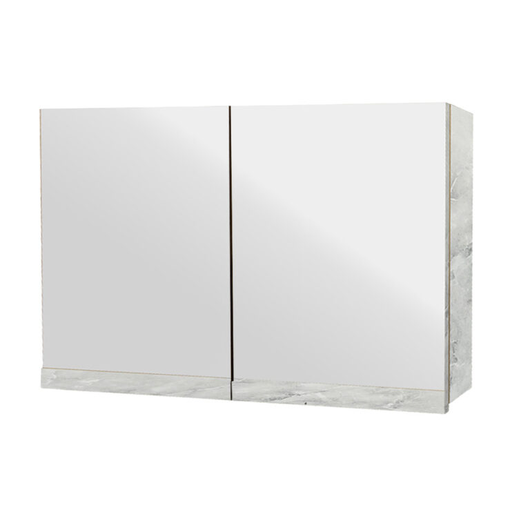 Κρεμαστό Ντουλάπι Μπάνιου Brilia90 με Διπλό Καθρέφτη & Επένδυση Μελαμίνης Με Όψη Με Όψη Λευκού Μάρμαρου & Γκρί Νερά
