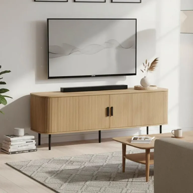 Μπουφές-έπιπλο τηλεόρασης μεσαίου μεγέθους Scandi MDF φυσικό με μεταλλικά μαύρα πόδια