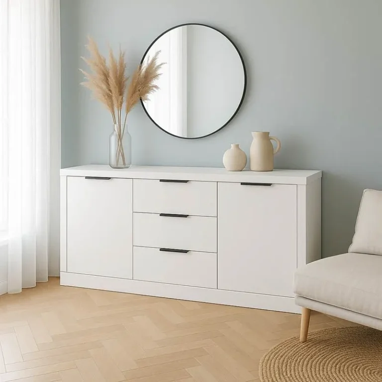 Μπουφές Leontina μασίφ ξύλο ακακίας σε φυσική απόχρωση με πόδι μαύρο μέταλλο 150x45x86εκ