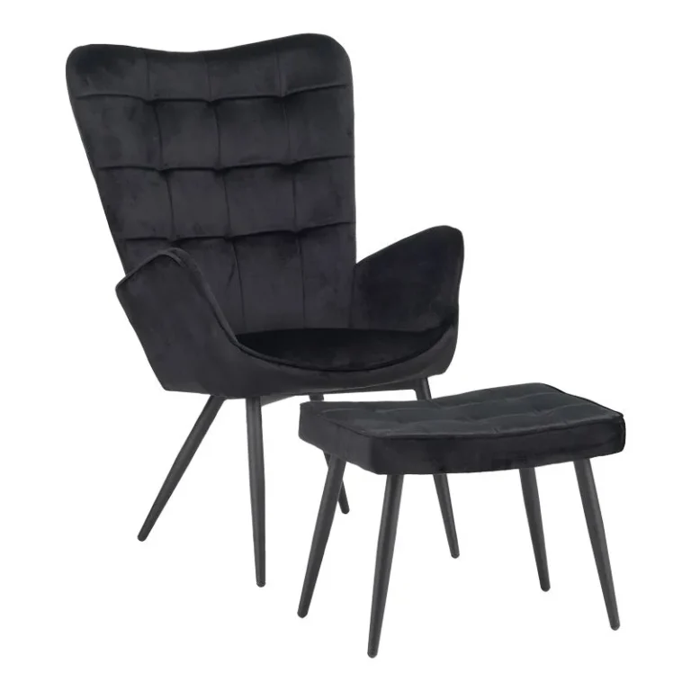 Πολυθρόνα Alkia σε μαύρο βελούδο με πόδι μαύρο μέταλλο