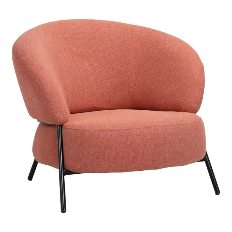 Πολυθρόνα με υποπόδιο Rueda βελούδο σε σάπιο μήλο απόχρωση με μαύρα μεταλλικά πόδια