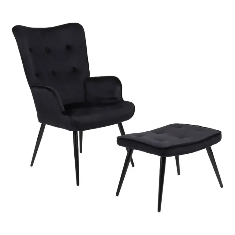 Πολυθρόνα με υποπόδιο Rueda βελούδο σε κίτρινη απόχρωση με μαύρα μεταλλικά πόδια