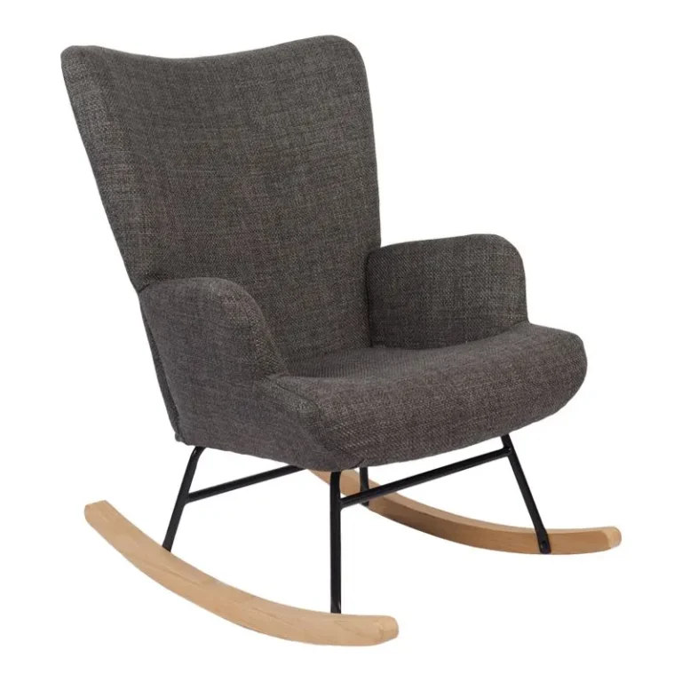 Πολυθρόνα με υποπόδιο Melisia ανθρακί ύφασμα και ξύλινο πόδι σε φυσική απόχρωση