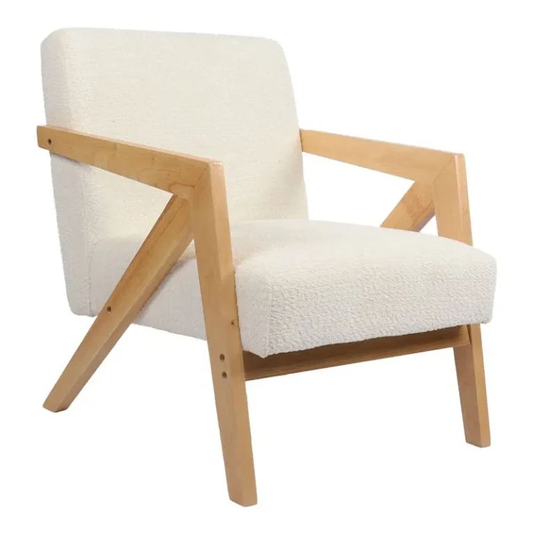 Πολυθρόνα-μπερζέρα με υποπόδιο Gerlina γκρι-μπεζ ύφασμα με πόδι σε φυσική απόχρωση