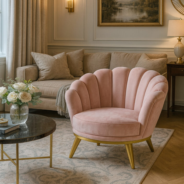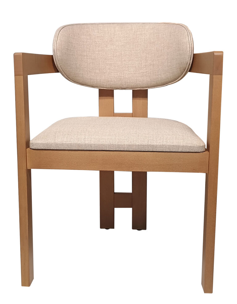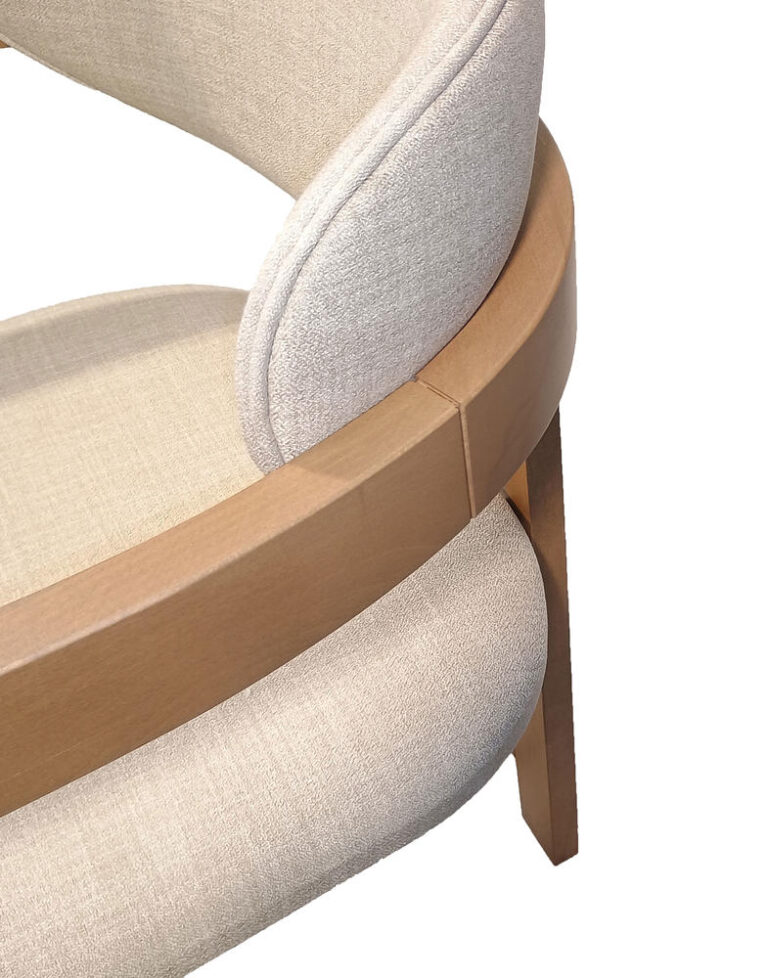 Πολυθρόνα-μπερζέρα με υποπόδιο Gerlina κρεμ ύφασμα με πόδι σε φυσική απόχρωση