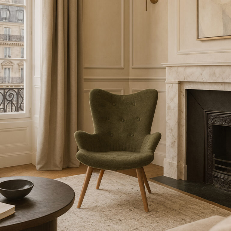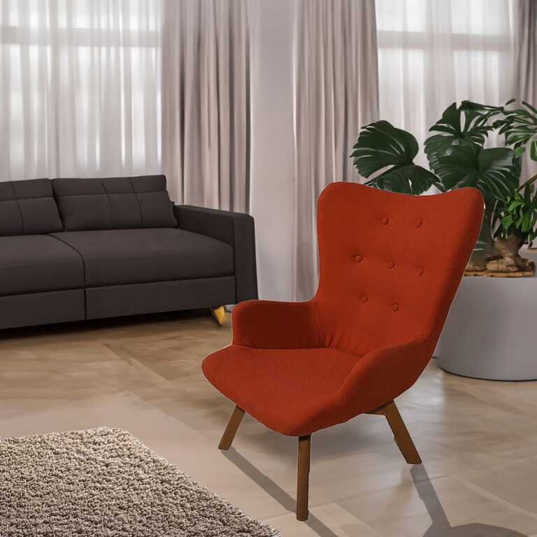 Πολυθρόνα-μπερζέρα με υποπόδιο Gerlina ανθρακί ύφασμα με πόδι σε φυσική απόχρωση