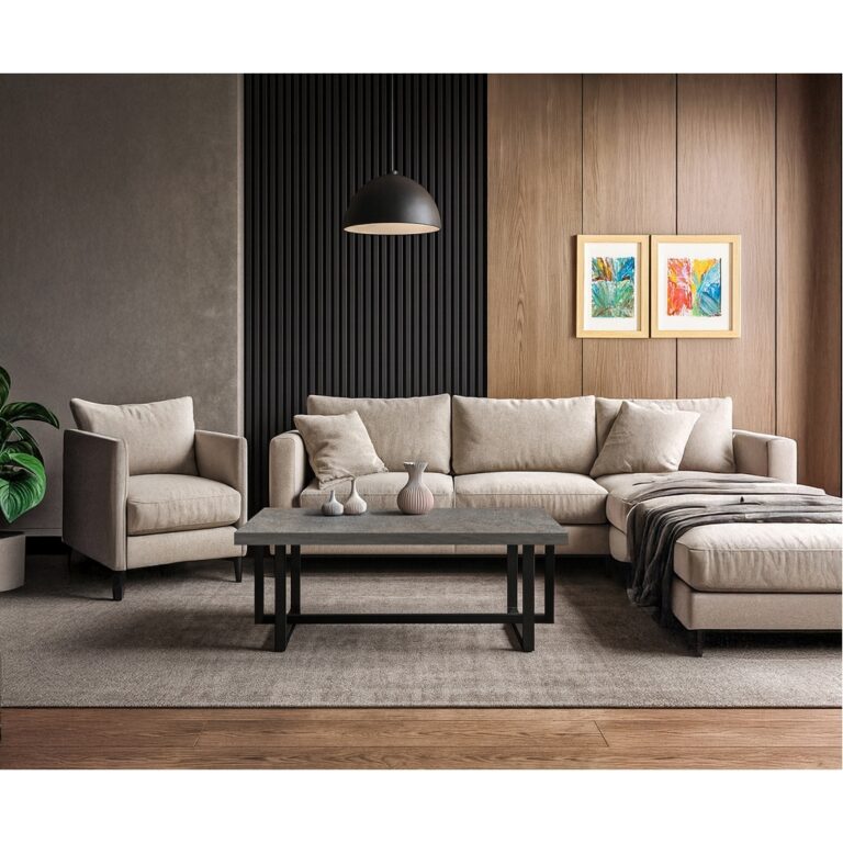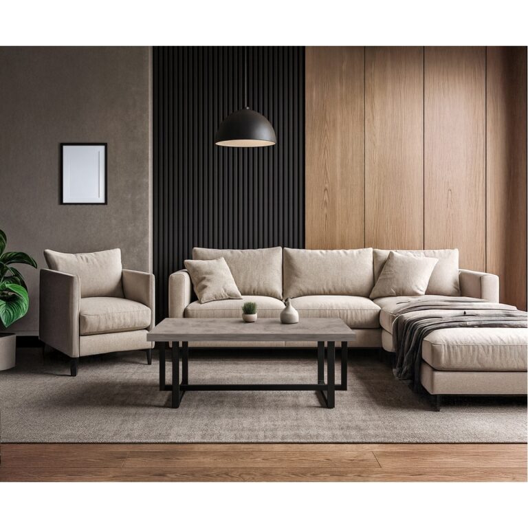 ΤΡΑΠΕΖΙ ΣΑΛΟΝΙΟΥ ERNEST ΜΕ ΟΨΗ ΤΣΙΜΕΝΤΟΥ ΣΕ ΑΝΟΙΧΤΟ ΧΡΩΜΑ ΚΑΙ ΜΑΥΡΗ ΜΕΤΑΛΛΙΚΗ ΒΑΣΗ