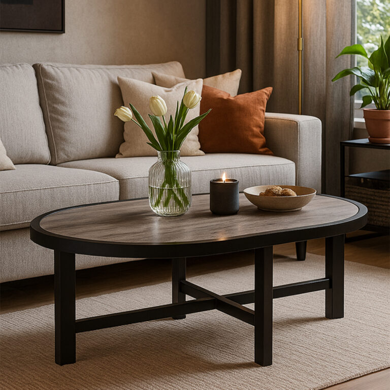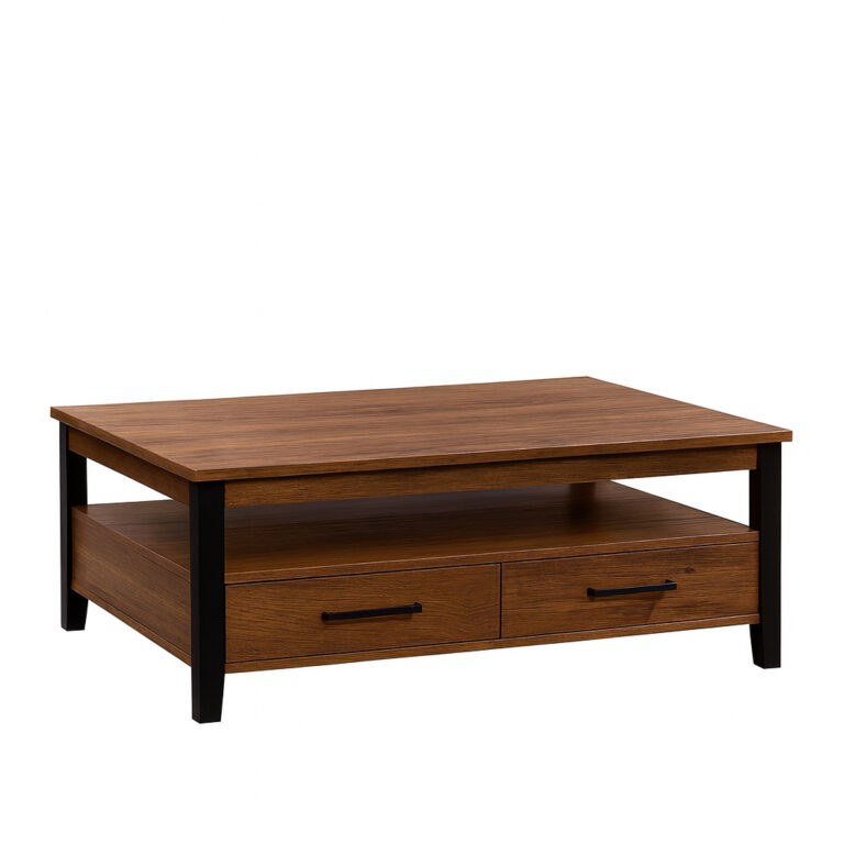 Τραπέζι σαλονιού Ezerdian μασίφ ξύλο ακακίας σε φυσική απόχρωση με επιφάνεια μαύρου μαρμάρου