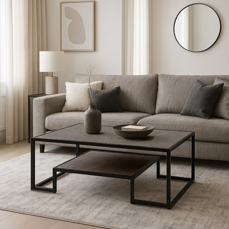 ΤΡΑΠΕΖΙ ΣΑΛΟΝΙΟΥ JANGO ΜΕ ΜΕΤΑΛΛΙΚΟ ΣΚΕΛΕΤΟ & ΕΠΙΦΑΝΕΙΑ ΑΠΟ ΜΕΛΑΜΙΝΗ ΤΥΠΟΥ ΤΣΙΜΕΝΤΟ ΣΚΟΥΡΟ