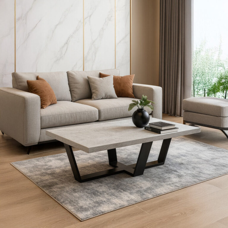 ΤΡΑΠΕΖΙ ΣΑΛΟΝΙΟΥ RIVA ΜΕ ΜΕΤΑΛΛΙΚΟ ΣΚΕΛΕΤΟ & ΕΠΙΦΑΝΕΙΑ ΑΠΟ ΜΕΛΑΜΙΝΗ ΤΥΠΟΥ ΤΣΙΜΕΝΤΟ ΑΝΟΙΧΤΟ