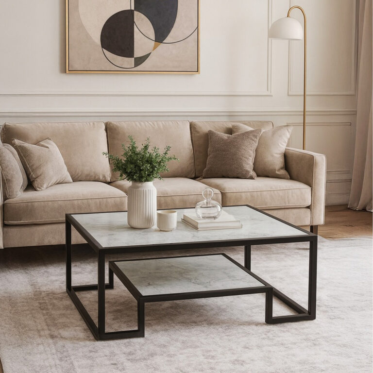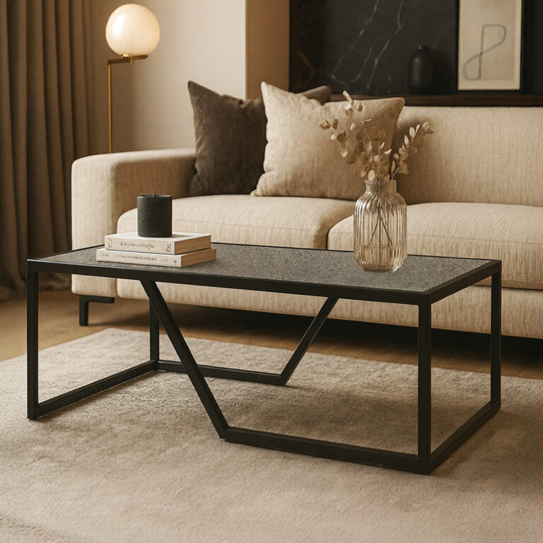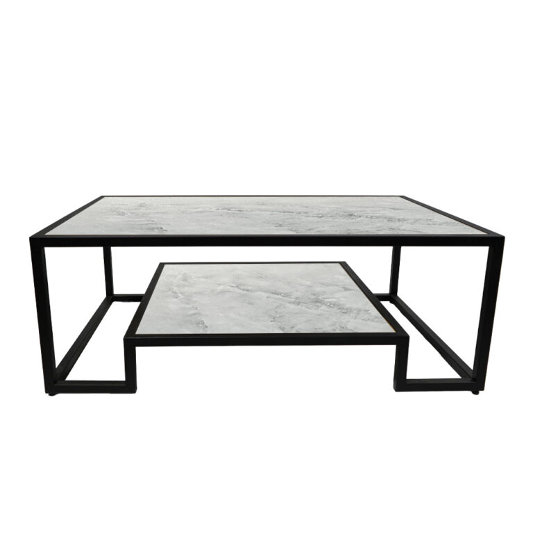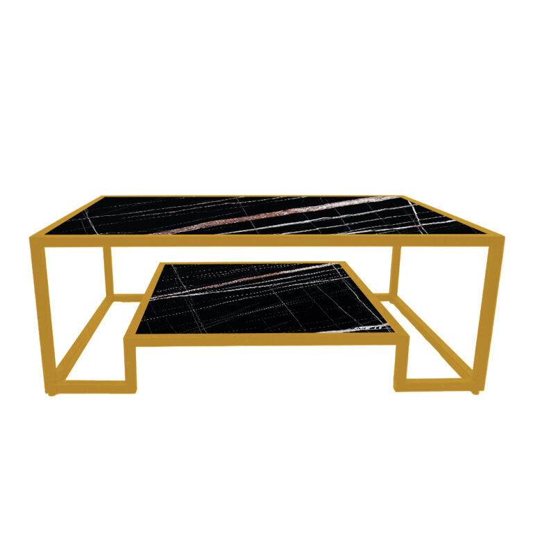 ΤΡΑΠΕΖΙ ΣΑΛΟΝΙΟΥ ROMEO ΜΕ ΕΠΙΦΑΝΕΙΑ ΜΑΥΡΟ ΜΑΡΜΑΡΟ ΚΑΙ ΜΕΤΑΛΛΙΚΟ ΣΚΕΛΕΤΟ