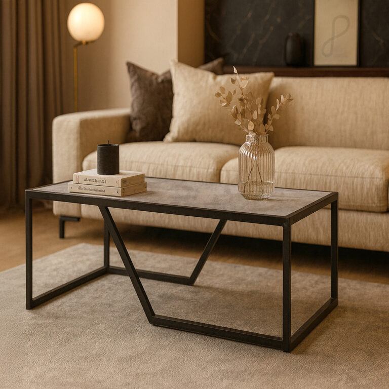 ΤΡΑΠΕΖΙ ΣΑΛΟΝΙΟΥ TRIVIO ΜΕ ΜΕΤΑΛΛΙΚΟ ΣΚΕΛΕΤΟ & ΕΠΙΦΑΝΕΙΑ ΑΠΟ ΜΕΛΑΜΙΝΗ ΤΥΠΟΥ ΤΣΙΜΕΝΤΟ ΑΝΟΙΧΤΟ