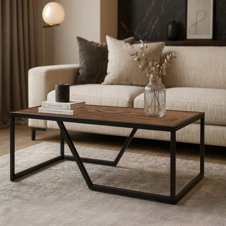 ΤΡΑΠΕΖΙ ΣΑΛΟΝΙΟΥ TRIVIO ΜΕ ΜΕΤΑΛΛΙΚΟ ΣΚΕΛΕΤΟ & ΕΠΙΦΑΝΕΙΑ ΑΠΟ ΜΕΛΑΜΙΝΗ ΣΕ ΑΠΟΧΡΩΣΗ ΦΥΣΙΚΟΥ ΞΥΛΟΥ