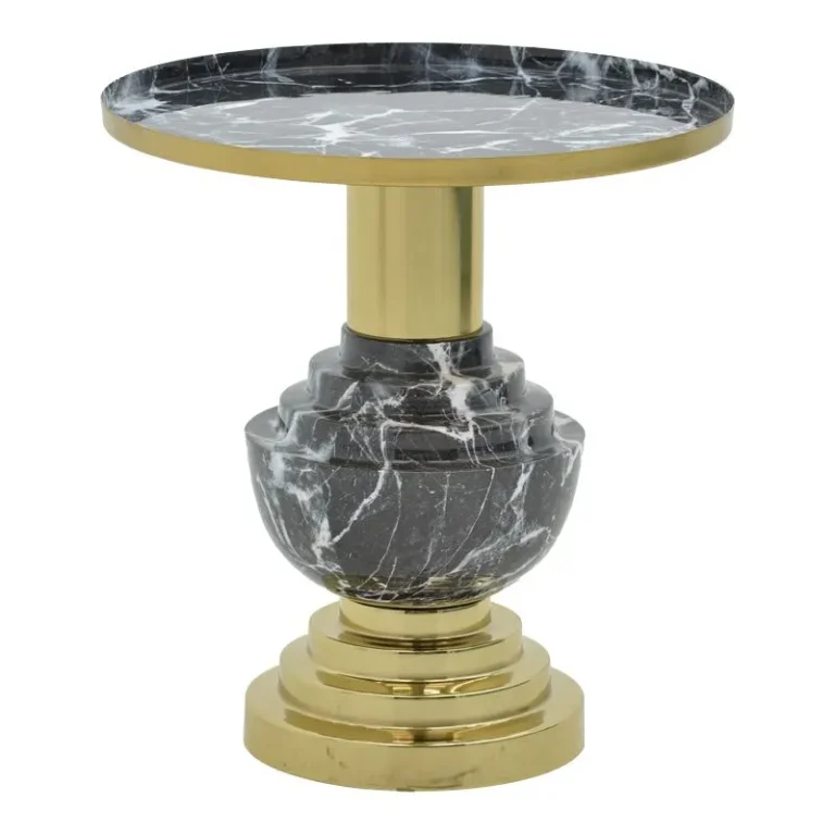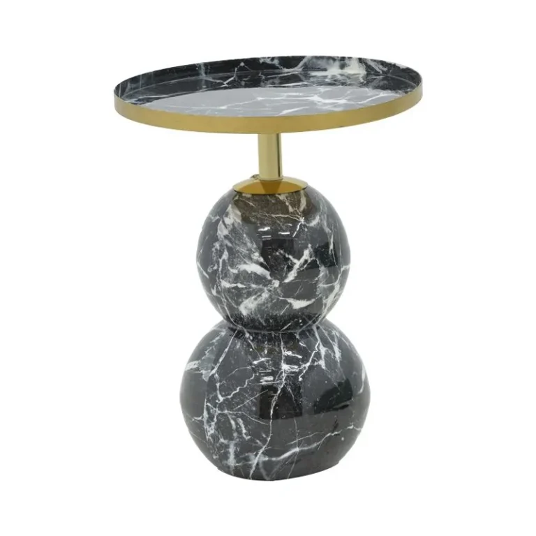 Βοηθητικό τραπέζι Kirkene sintered stone σε απόχρωση μαύρο μαρμάρου με μαύρο μέταλλο