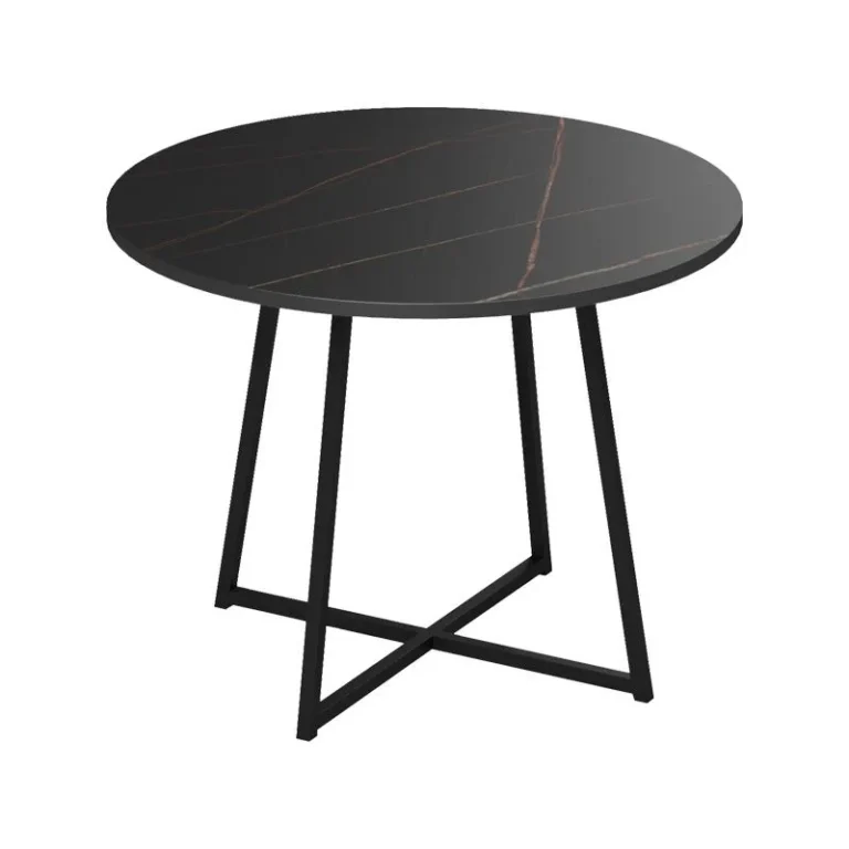 Τραπέζι Sarah Ι σε μαύρο μαρμάρου απόχρωση με μαύρα μεταλλικά πόδια Φ100×76εκ