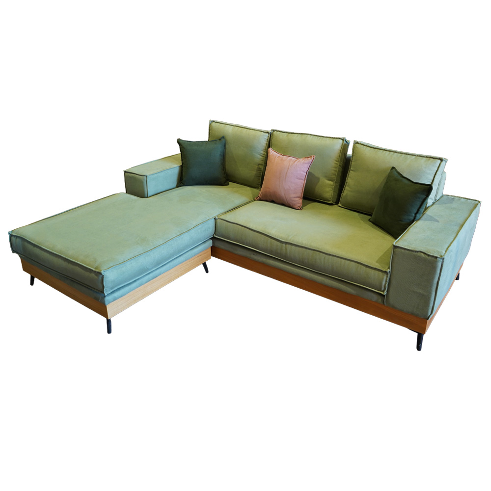 Επενδυμένος με ύφασμα Μεντα, ο καναπές αποπνέει φρεσκάδα και διαχρονικό χαρακτήρα, ενώ τα αναπαυτικά μαξιλάρια πλάτης και διακοσμητικά μαξιλάρια εξασφαλίζουν υψηλό επίπεδο άνεσης για καθημερινή χρήση. Η αναστρέψιμη γωνία δίνει τη δυνατότητα προσαρμογής του καναπέ ανάλογα με τη διαρρύθμιση του χώρου σας, προσφέροντας ευελιξία και λειτουργικότητα.