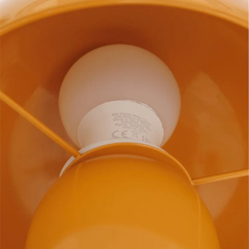 Προσθέστε μια τολμηρή και στιλάτη πινελιά στον χώρο σας με αυτό το εντυπωσιακό επιτραπέζιο φωτιστικό σε σχήμα μανιταριού. Εμπνευσμένο από τον εμβληματικό σχεδιασμό των μέσων του 20ού αιώνα (mid-century modern) και του pop art, αυτό το φωτιστικό ξεχωρίζει με τις οργανικές του φόρμες και το μονόχρωμο κίτρινου χρώμα του.