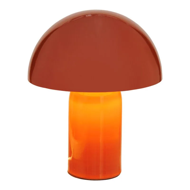 Προσθέστε μια τολμηρή και στιλάτη πινελιά στον χώρο σας με αυτό το εντυπωσιακό επιτραπέζιο φωτιστικό σε σχήμα μανιταριού. Εμπνευσμένο από τον εμβληματικό σχεδιασμό των μέσων του 20ού αιώνα (mid-century modern) και του pop art, αυτό το φωτιστικό ξεχωρίζει με τις οργανικές του φόρμες και το μονόχρωμο terracotta του χρώμα του.