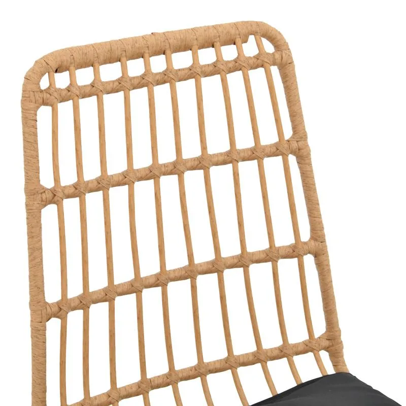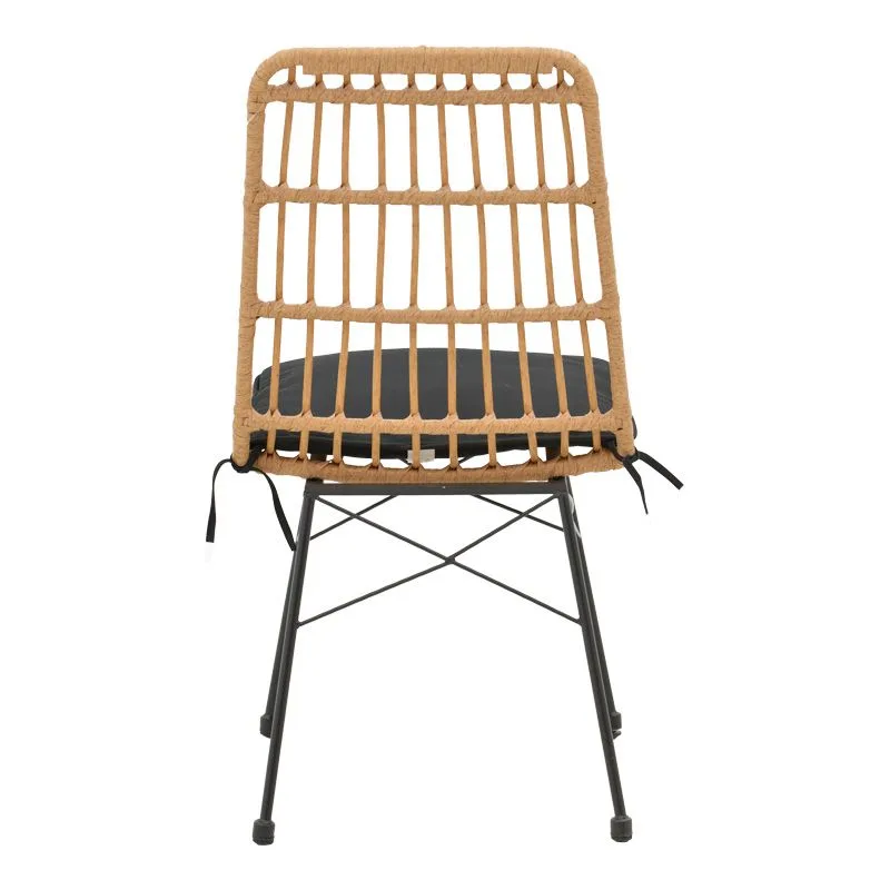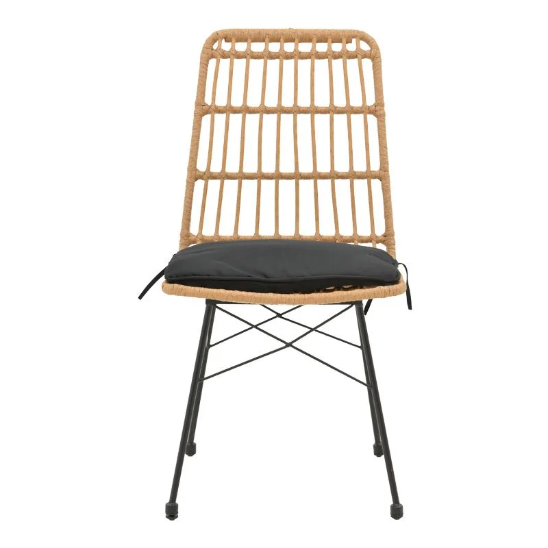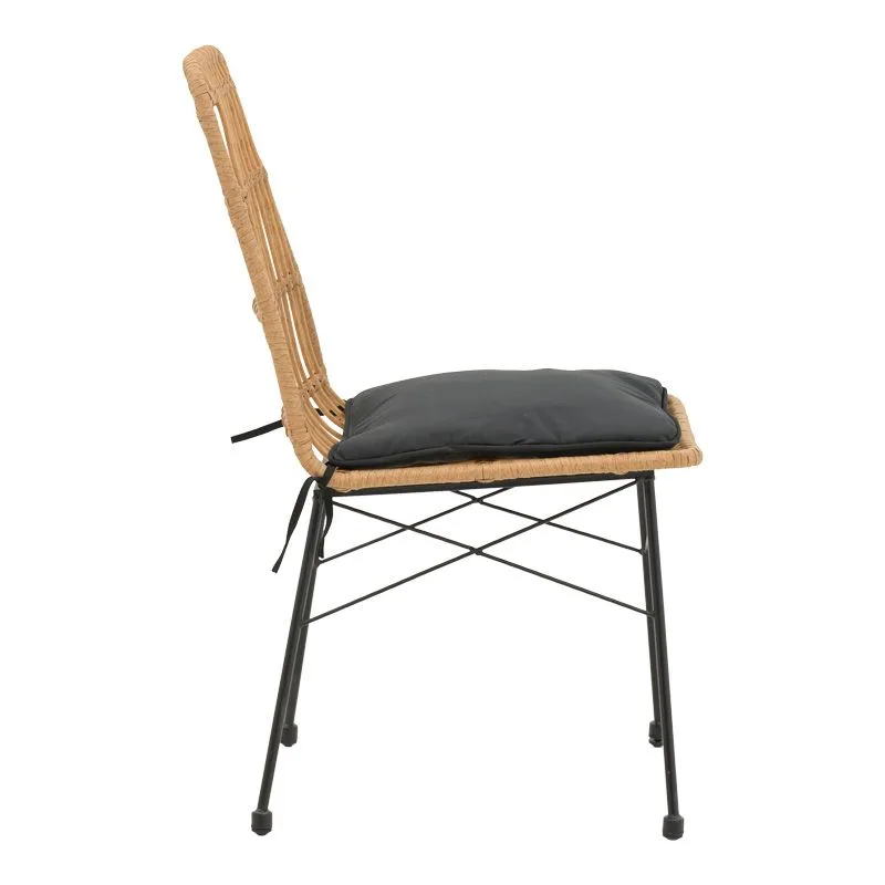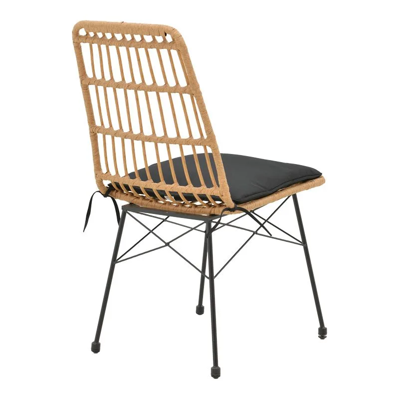 Καρέκλα Naoki rattan σε φυσική απόχρωση με μαύρο μαξιλάρι και μεταλλικό μαύρο πόδι 45.5×59.5×89εκ