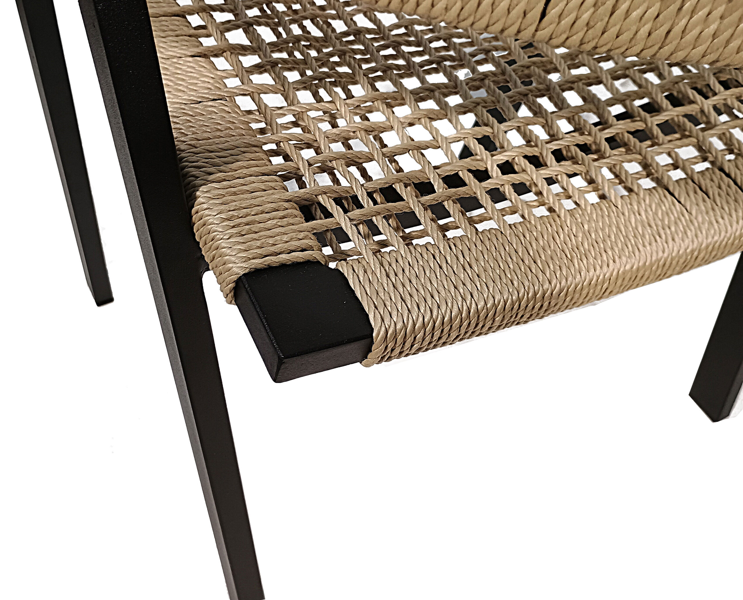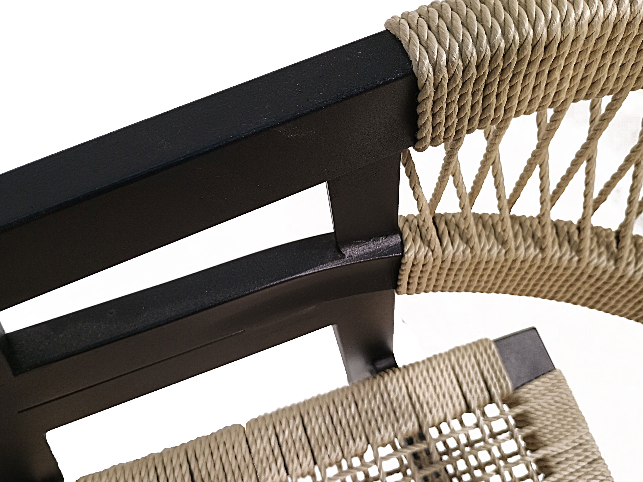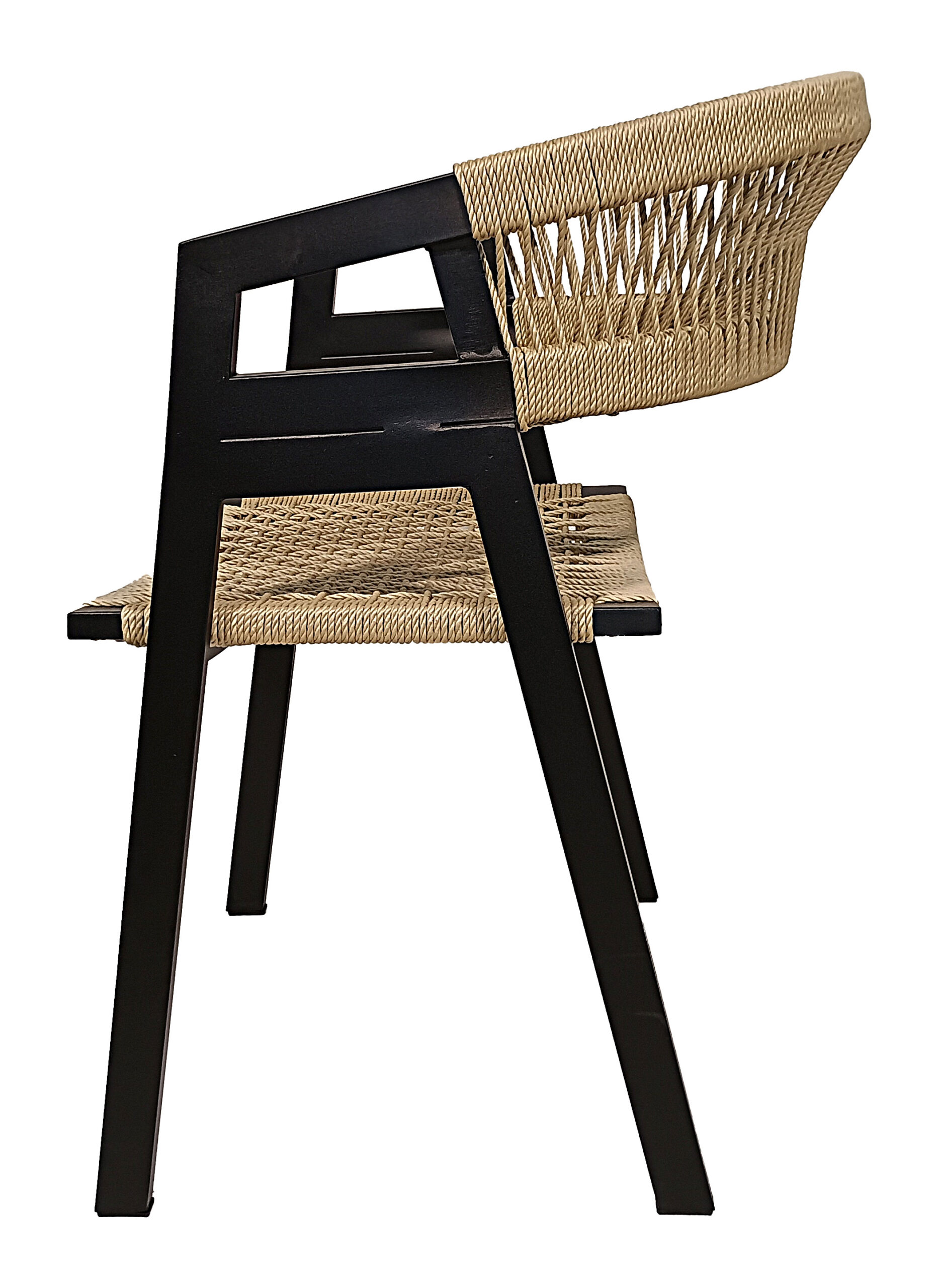 Η καρέκλα GAP συνδυάζει τη στιβαρή κατασκευή με αλουμίνιο υψηλής ποιότητας σε μαύρο χρώμα, χειροποίητο κάθισμα από κορδόνι σε απόχρωση φυσική. Ένα έπιπλο που προσφέρει όχι μόνο άνεση, αλλά και ζεστή, φυσική αισθητική με μια σύγχρονη νότα.