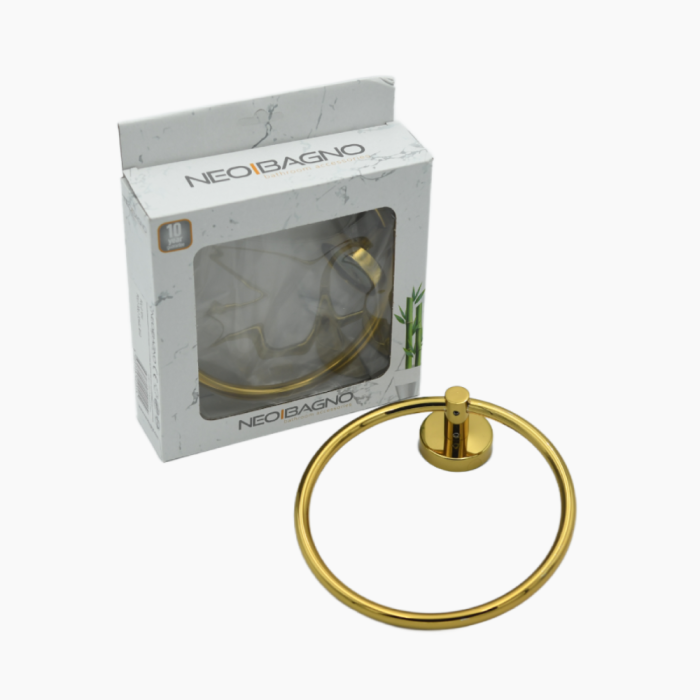 Ανανεώστε το μπάνιο σας με την κομψή και πρακτική κρεμάστρα πετσέτας σε μορφή κρίκου. Με μοντέρνο χρυσό φινίρισμα, ταιριάζει ιδανικά σε κάθε σύγχρονη διακόσμηση και προσφέρει άνετη τοποθέτηση για πετσέτες χεριών ή προσώπου.