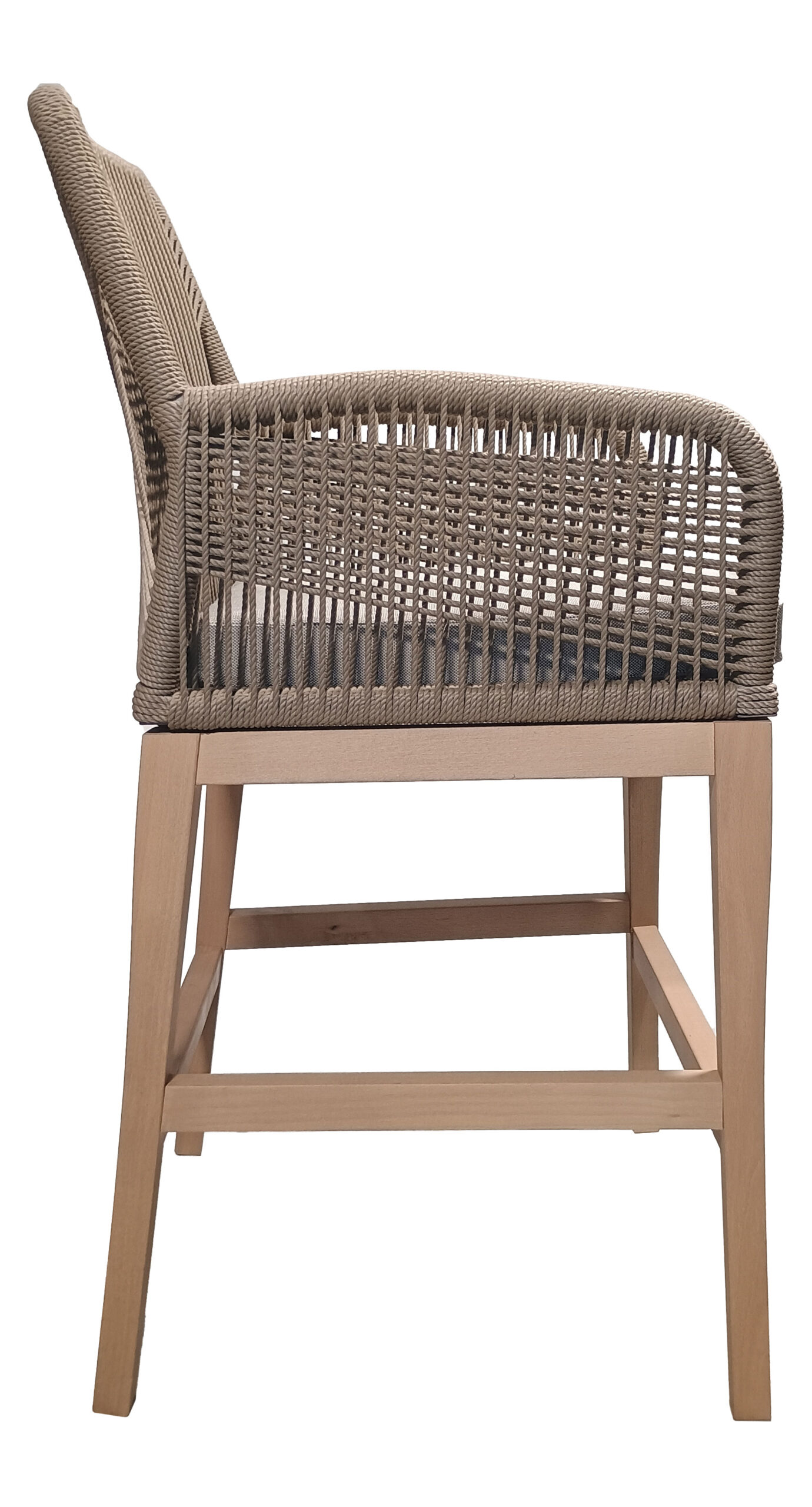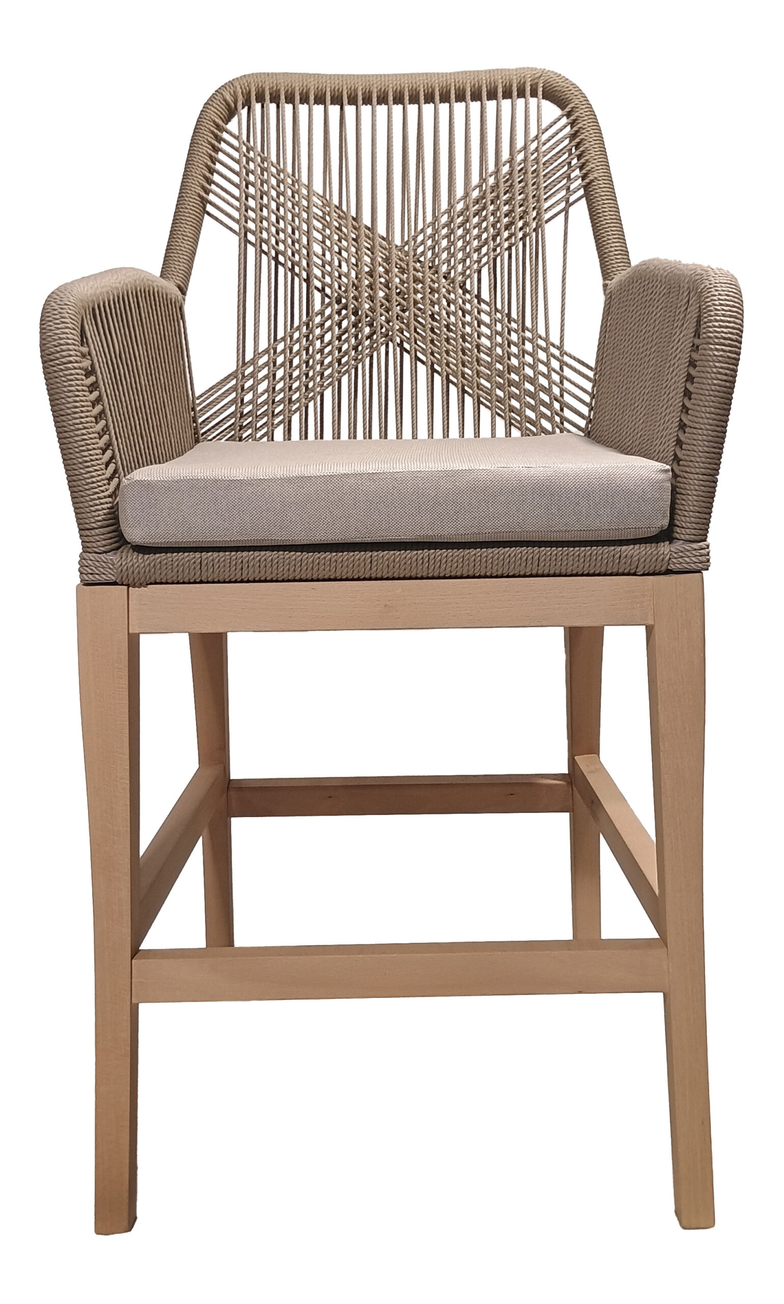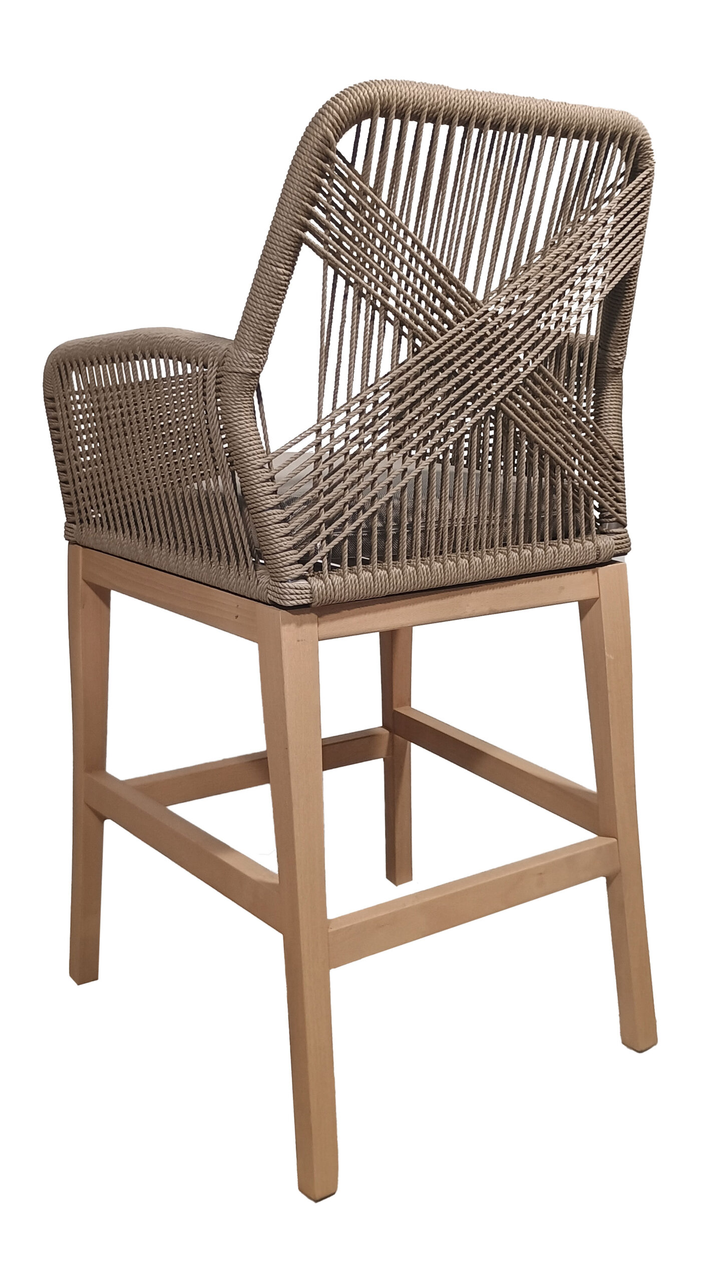 Σκαμπό Μπάρ OASIS με Πλάτη & Μπράτσα – Ξύλινη Βάση & Πλέξη Κορδονιού Σε Απόχρωση Πούρου – 50x56x115 εκ.