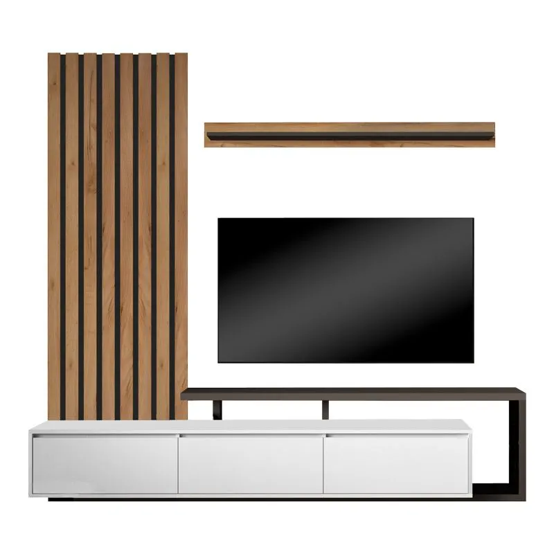 Ανανεώστε το σαλόνι σας με το σύνθετο τηλεόρασης Claironse , που συνδυάζει λειτουργικότητα και κομψότητα. Ο μίνιμαλ σχεδιασμός με καθαρές γραμμές, οι ποιοτικά κατασκευασμένες επιφάνειες και οι ευρύχωροι αποθηκευτικοί χώροι καθιστούν το Claironse ιδανική επιλογή για κάθε καθιστικό. Τα τρία ντουλάπια και τα ράφια προσφέρουν οργανωμένη αποθήκευση για βιβλία, ηλεκτρονικές συσκευές και διακοσμητικά αντικείμενα, ενώ το επιτοίχιο ράφι ολοκληρώνει την αισθητική του χώρου.