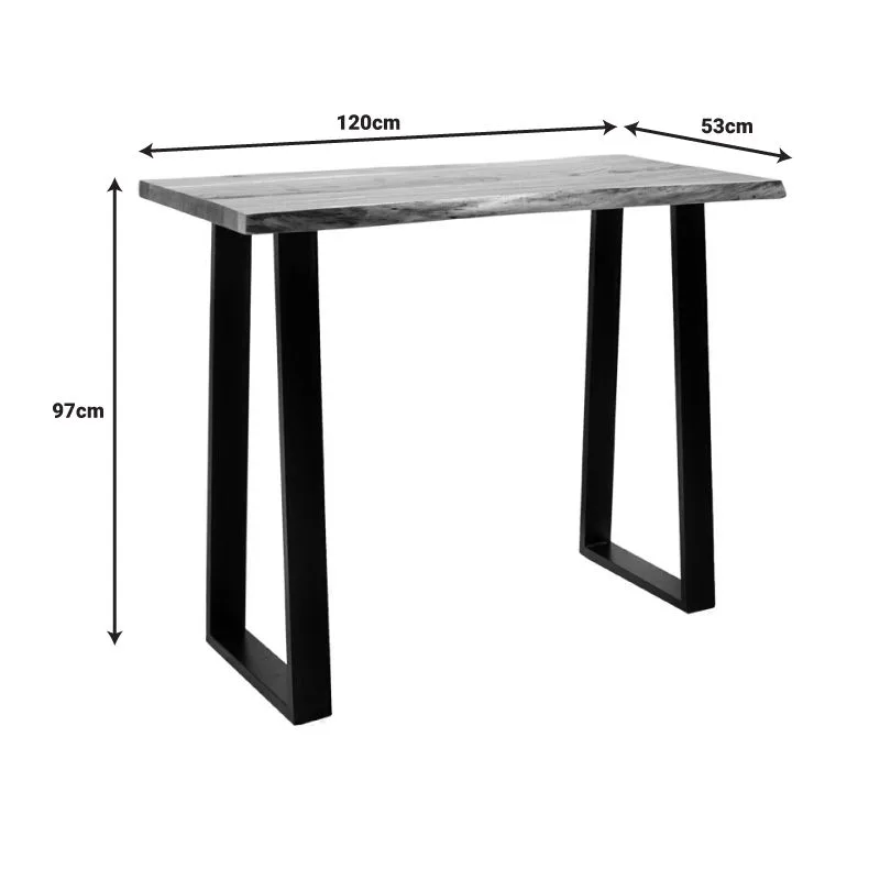 Τραπέζι μπαρ Miles μασίφ ξύλο ακακίας 3.7-4εκ σε φυσική απόχρωση με μαύρα μεταλλικά πόδια 120x53x97εκ