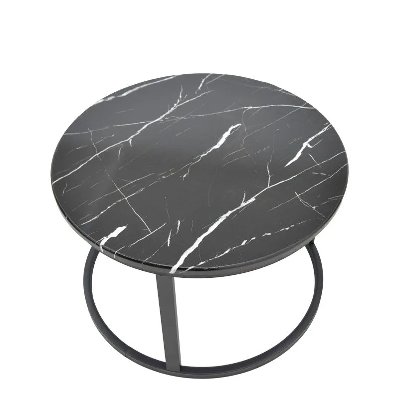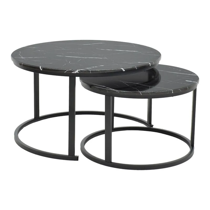 Τραπέζι σαλονιού Revelon σετ 2τεμ mdf σε απόχρωση μαύρο όψης μαρμάρου 80x80x45εκ