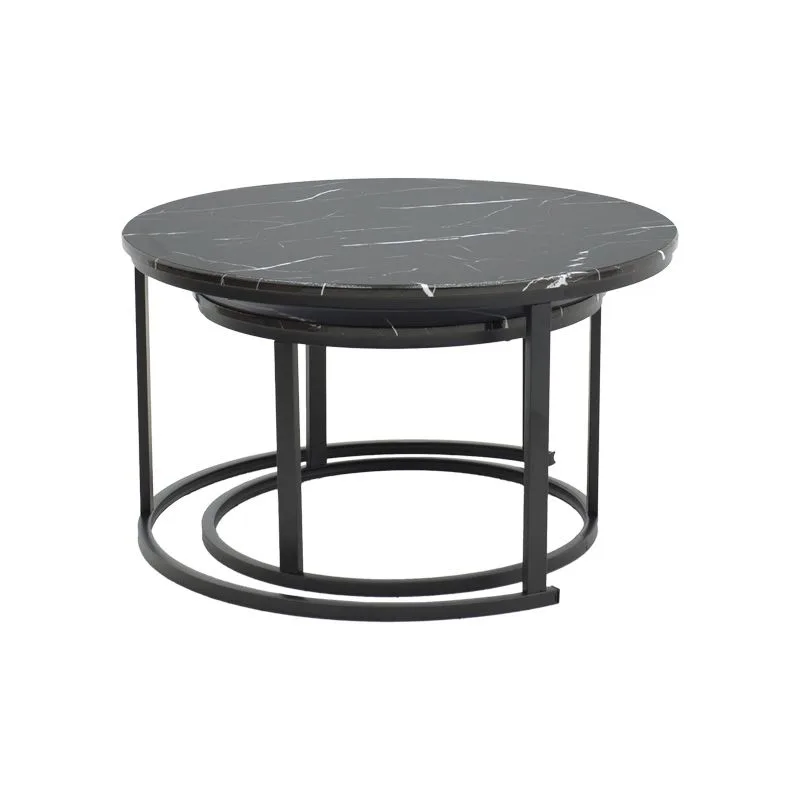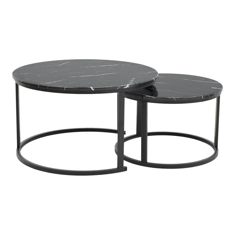 Τραπέζι σαλονιού Revelon σετ 2τεμ mdf σε απόχρωση μαύρο όψης μαρμάρου