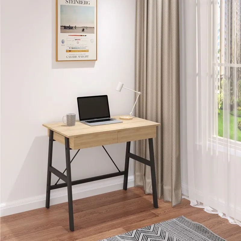 Γραφείο εργασίας Lione με συρτάρια σε oak απόχρωση με πόδι μαύρο μέταλλο 90x50x75εκ