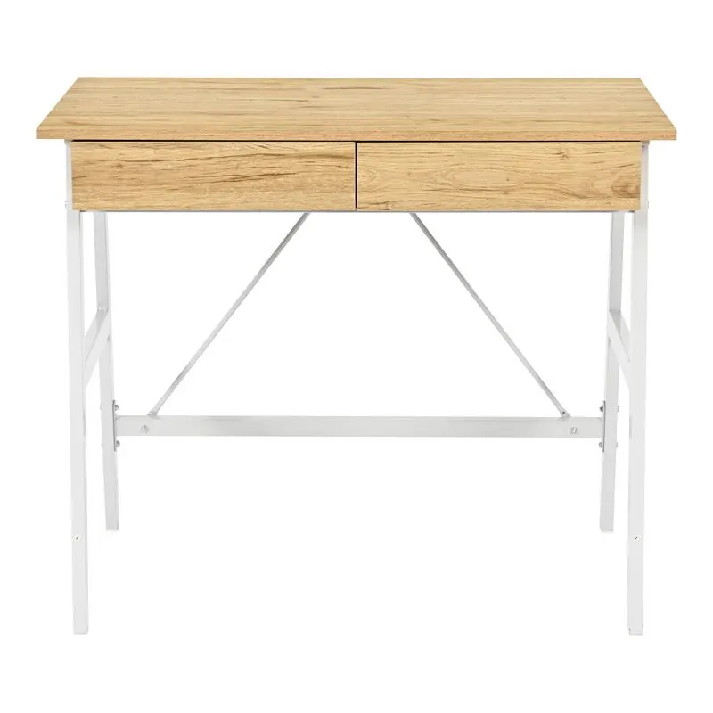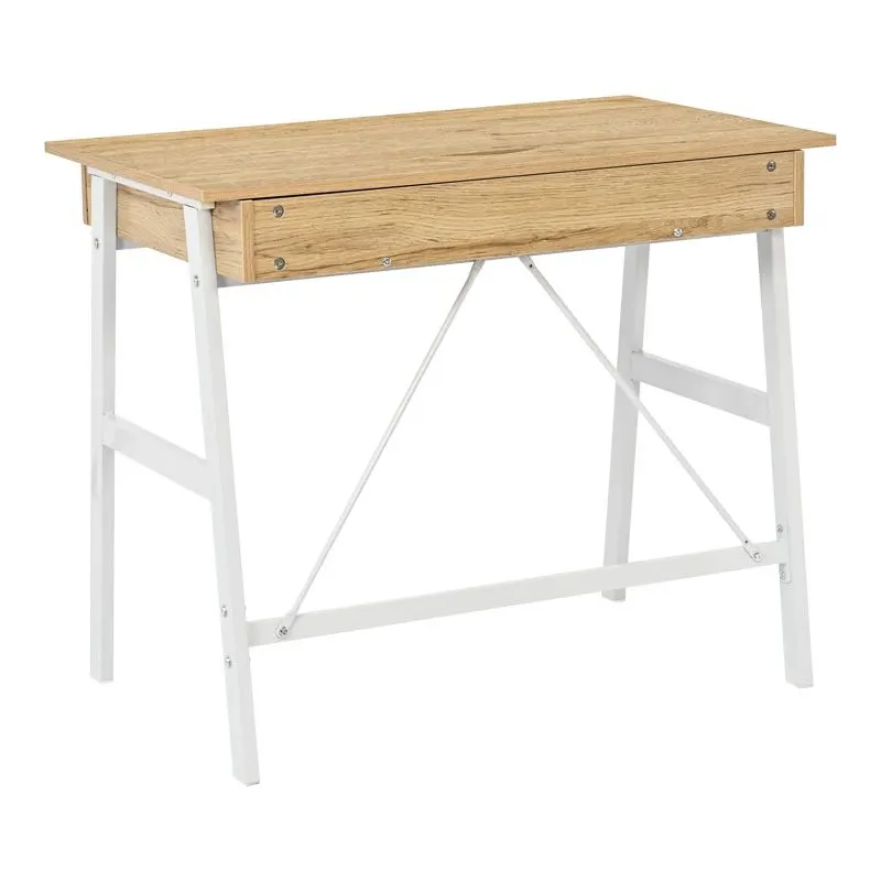 Γραφείο εργασίας Lione με συρτάρια σε oak απόχρωση με πόδι λευκό μέταλλο 90x50x75εκ