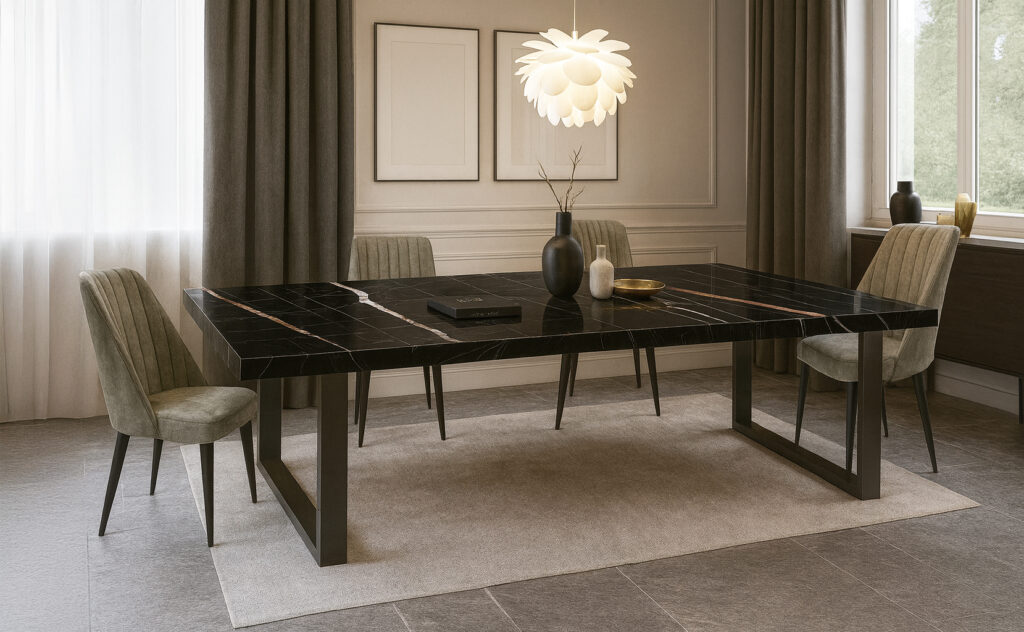 Αναβαθμίστε τον χώρο της τραπεζαρίας σας με αυτό το κομψό και μοντέρνο σετ τραπεζαρίας που συνδυάζει την πολυτέλεια με τις καθαρές, μινιμαλιστικές γραμμές της σύγχρονης διακόσμησης. Ιδανικό για σύγχρονες κατοικίες, επαγγελματικούς χώρους ή χώρους φιλοξενίας που επιζητούν στυλ χωρίς υπερβολές.