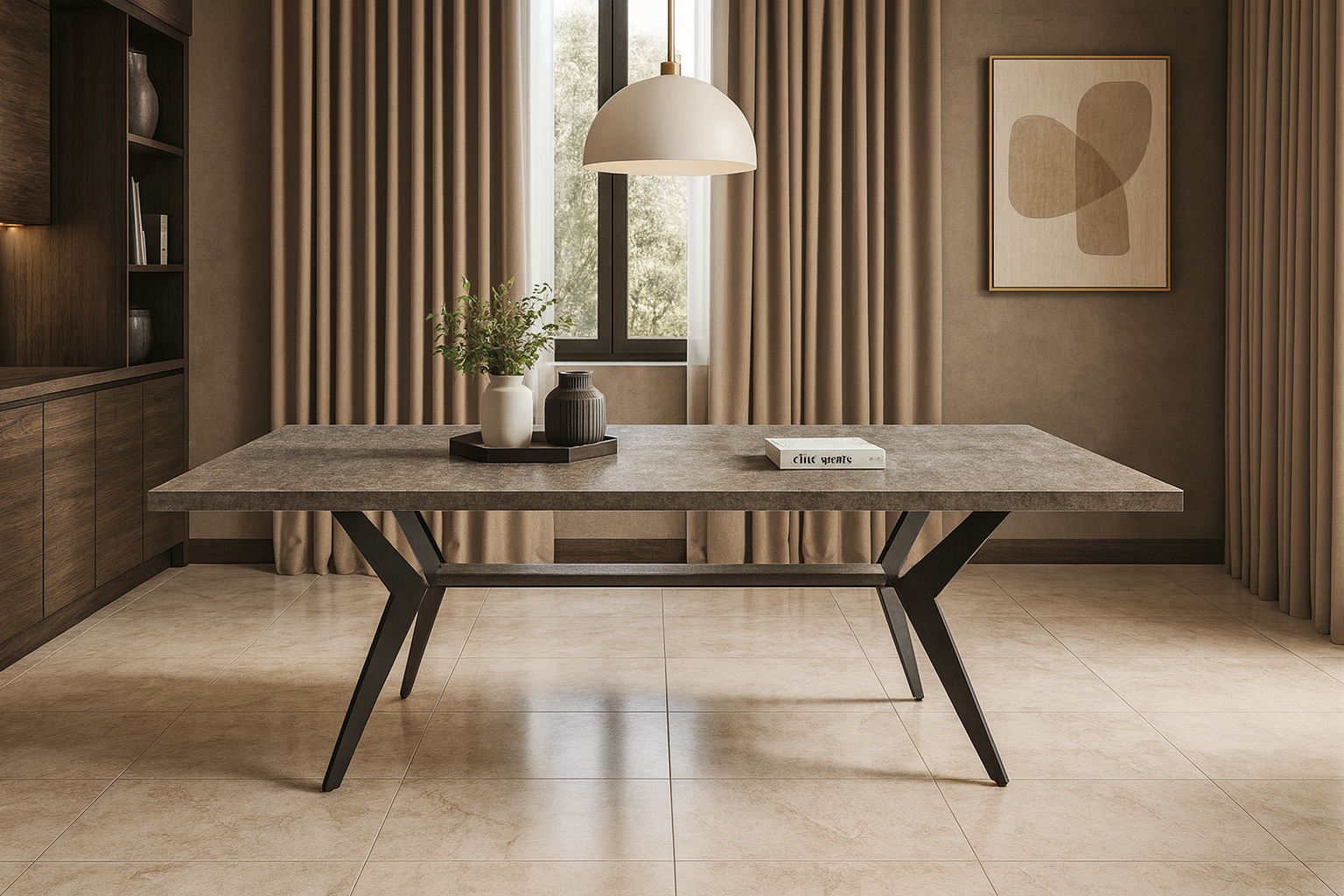 Τραπέζι Lama μεταλλική βάση σε μαύρο χρώμα και επιφάνεια από μελαμίνη με όψη τσιμέντου σε σκούρο χρώμα