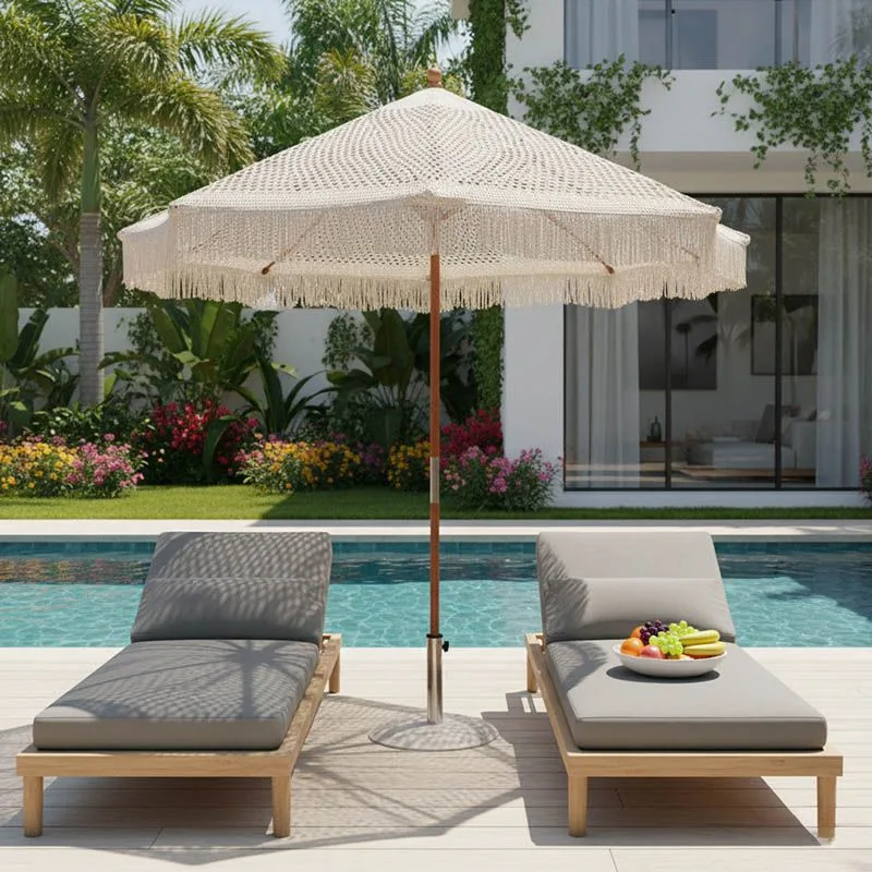 Ομπρέλα Brilie ξύλο-μακραμέ Φ2.70×2.60 m εκρού